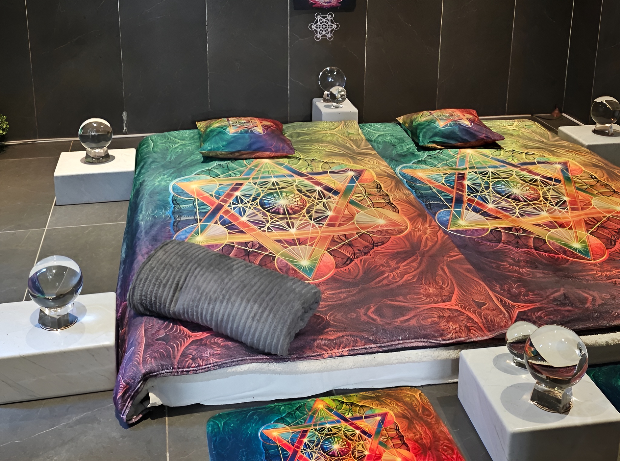 A tachyonizált kristálygömbök, valamit a gyógyító piramis együtt egy különleges teret hoznak létre, mely